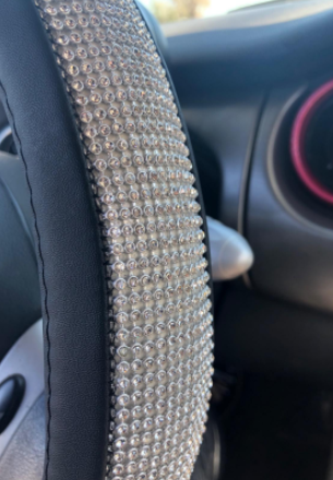 I absolutely love my steering wheel cover. It is so sparkly and fun. It was fairly easy to install compared to others I’ve tried.