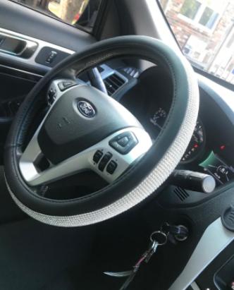 I love all that sparkles. Apart of me wishes that it was sparkly all the way around. But it’s pretty. I’ve had this steering wheel cover for about two weeks. It looks great, and it fits my Ford Escape perfectly. It was difficult to get it on, but I would except it to be. I’d definitely recommend it.